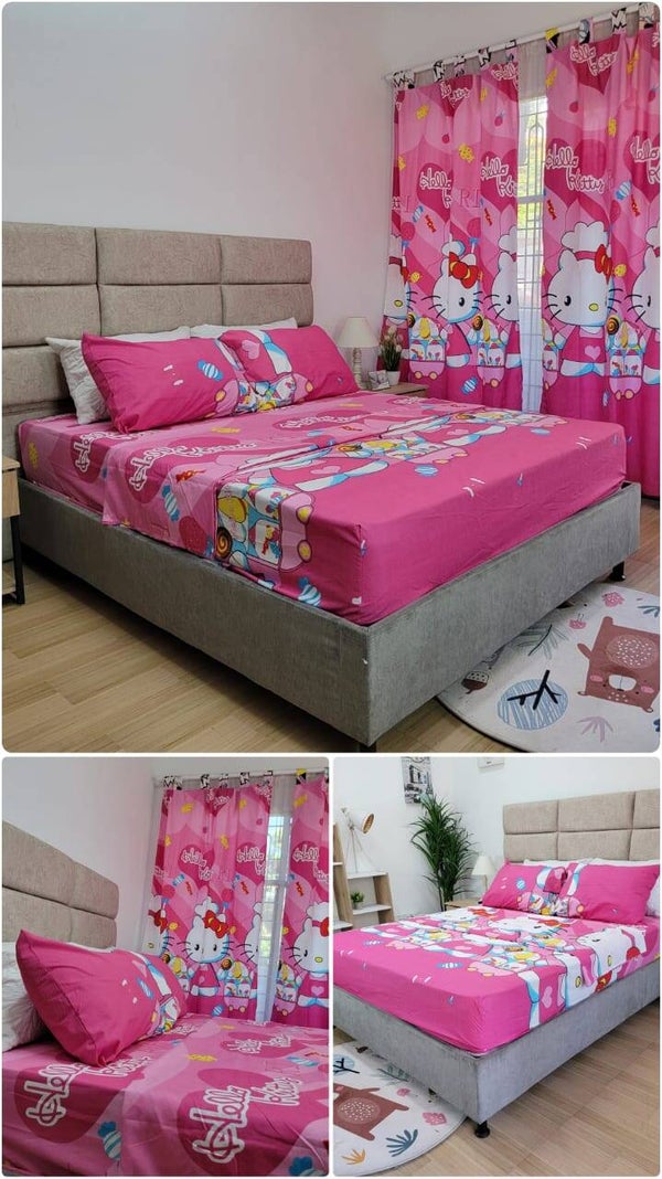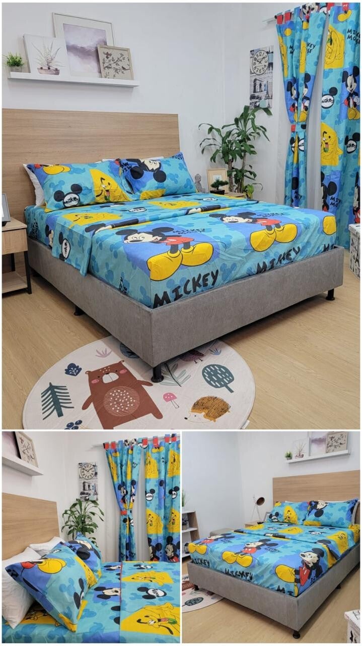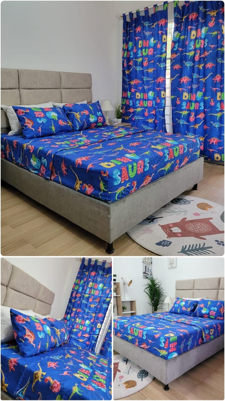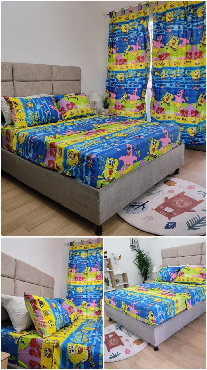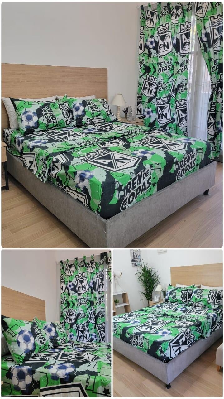 1 sabana 1 sobre sabana 2 fundas de almohadas 2 cortinas